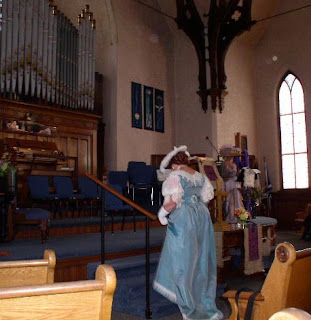 right after Cindy was done modeling her bustle gown, so I could stand next to